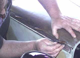 in place. Here Paul is scribing a line on the old, lower piece.