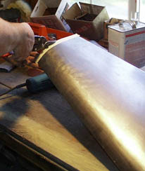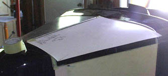 Carpenters may measure twice and cut once...but sheet metal guys, especially inexperienced ones like me should measure 4 or 5 times ! The work that follows in thes photos is done by my friend Paul Moore, a super gearhead who can do everything. When I began to try to duplicate what I had seen him do I used a piece of heavy construction paper to make a pattern, just to be sure. Write the measurements on it and save...hey, you might get to like this work and want to do it again next year :~)