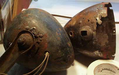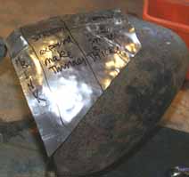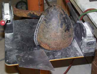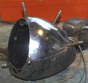 If you are lucky enough to find any of these nacelles at all they typically suffer from two major problems. For cars left outside, the bottom is invariably rotted out (as seen on both of these example)..and/or the nacelle has been modified to fit a sealed beam unit (often a legal requirement) such as seen on the example at right, thus losing the fine turned down egg shape they had. Someone has applied some crude welding to the lefthand unit, so I can't even get the brace off. What to do? 80% of the units shown are in pretty good shape: so, throwing them away would be a shame. I decided to try to use some of my largely theoretical metalshapers skills to effect a repair...let's see how I do! Hey..If I can do it..you can do it!